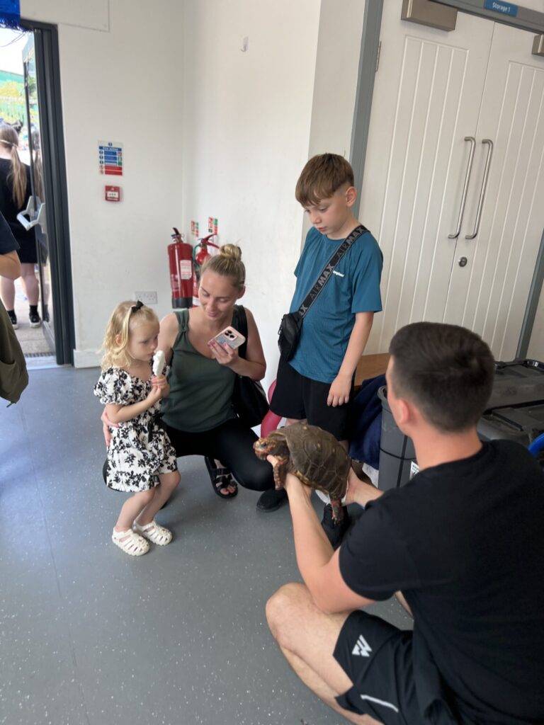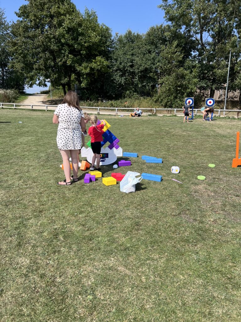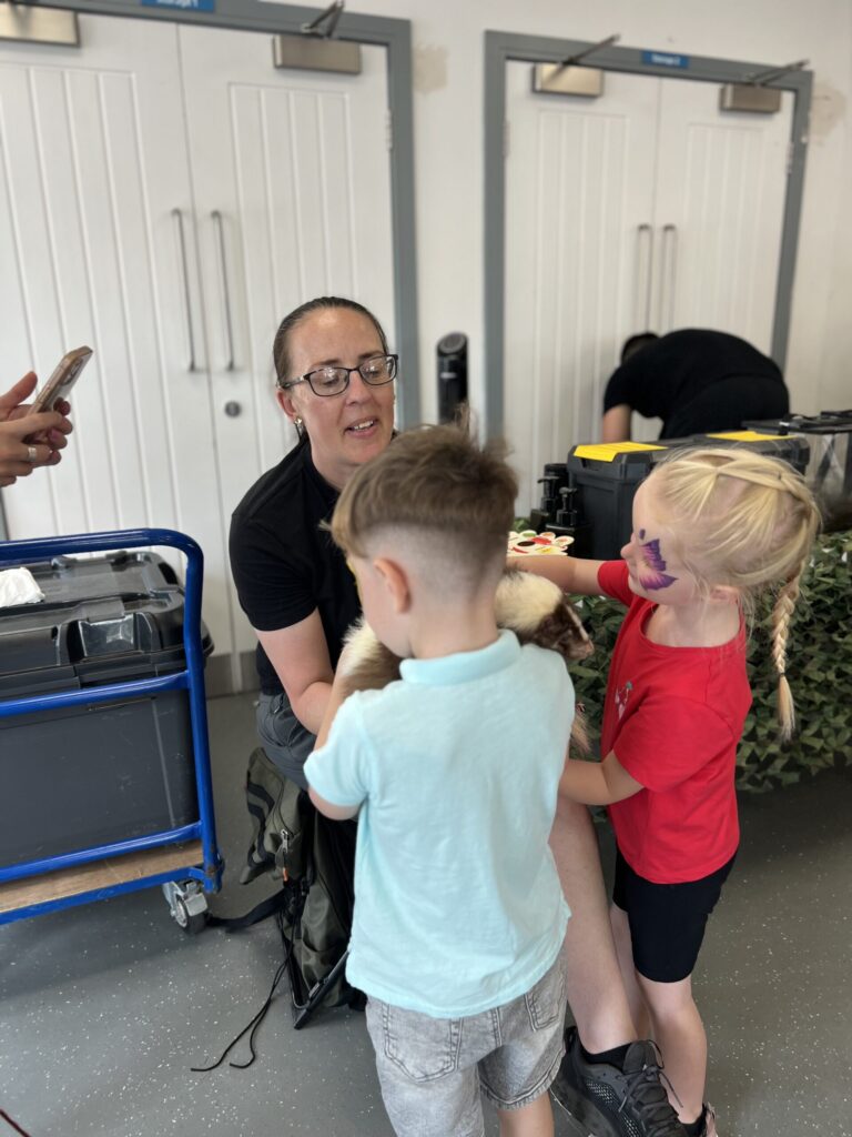 We introduced some amazing animals for people to meet (snake; tortoise; tarantula and a skunk to name a few!), had acrobatics lessons, spray painting tutorials with (insert organisation name), Giant Tetris and birdbox/Beebox making.
